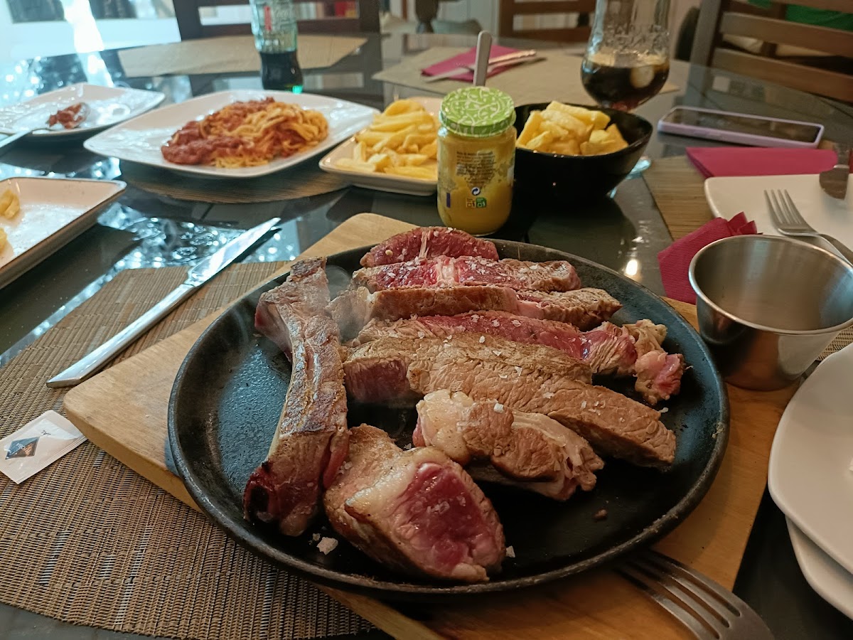 There was live music, which made the atmosphere great. The food was excellent. Dessert was a typical thing that is eaten at Easter. Already forgot the name (Torrija)